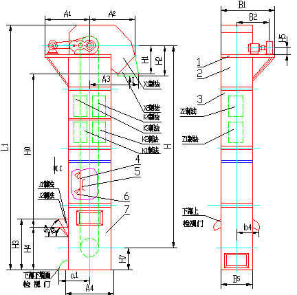 HL型環(huán)鏈離心斗式提升機外形示意圖: